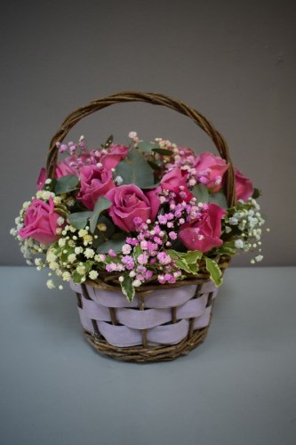 Композиция в корзинке: розы Эквадор, эвкалипт