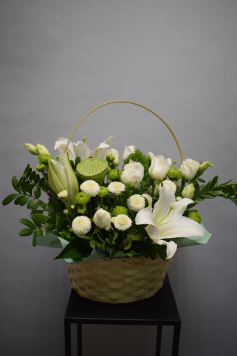 Композиция: лилия, лотос, хризантема кустовая, роза, ...